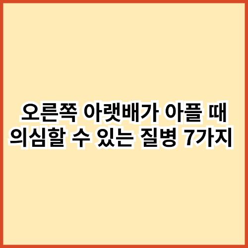 오른쪽 아랫배 통증은 일시적인 소화 장애에서부터 응급 수술이 필요한 질환까지 다양하게 나타날 수 있습니다. 특히 통증이 지속되거나 날카롭고 찌르는 듯한 느낌이 든다면 즉시 병원을 방문해야 할 수도 있습니다. 이 글에서는 오른쪽 아랫배 통증이 발생했을 때 의심해볼 수 있는 주요 질병 7가지에 대해 설명드리겠습니다. 통증의 위치, 강도, 동반 증상을 확인하여 적절한 대처가 필요합니다.